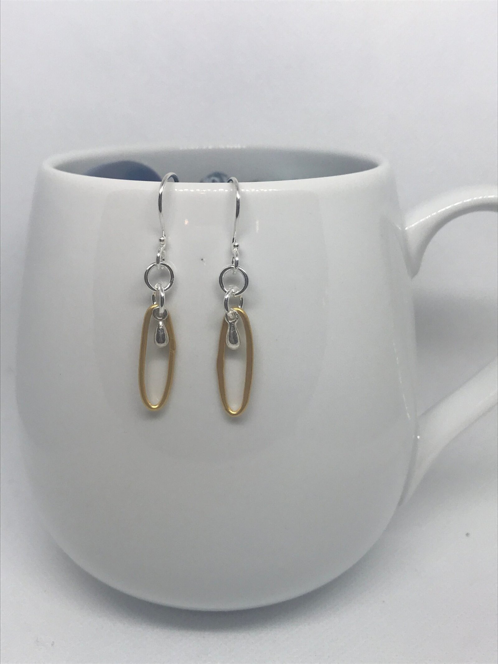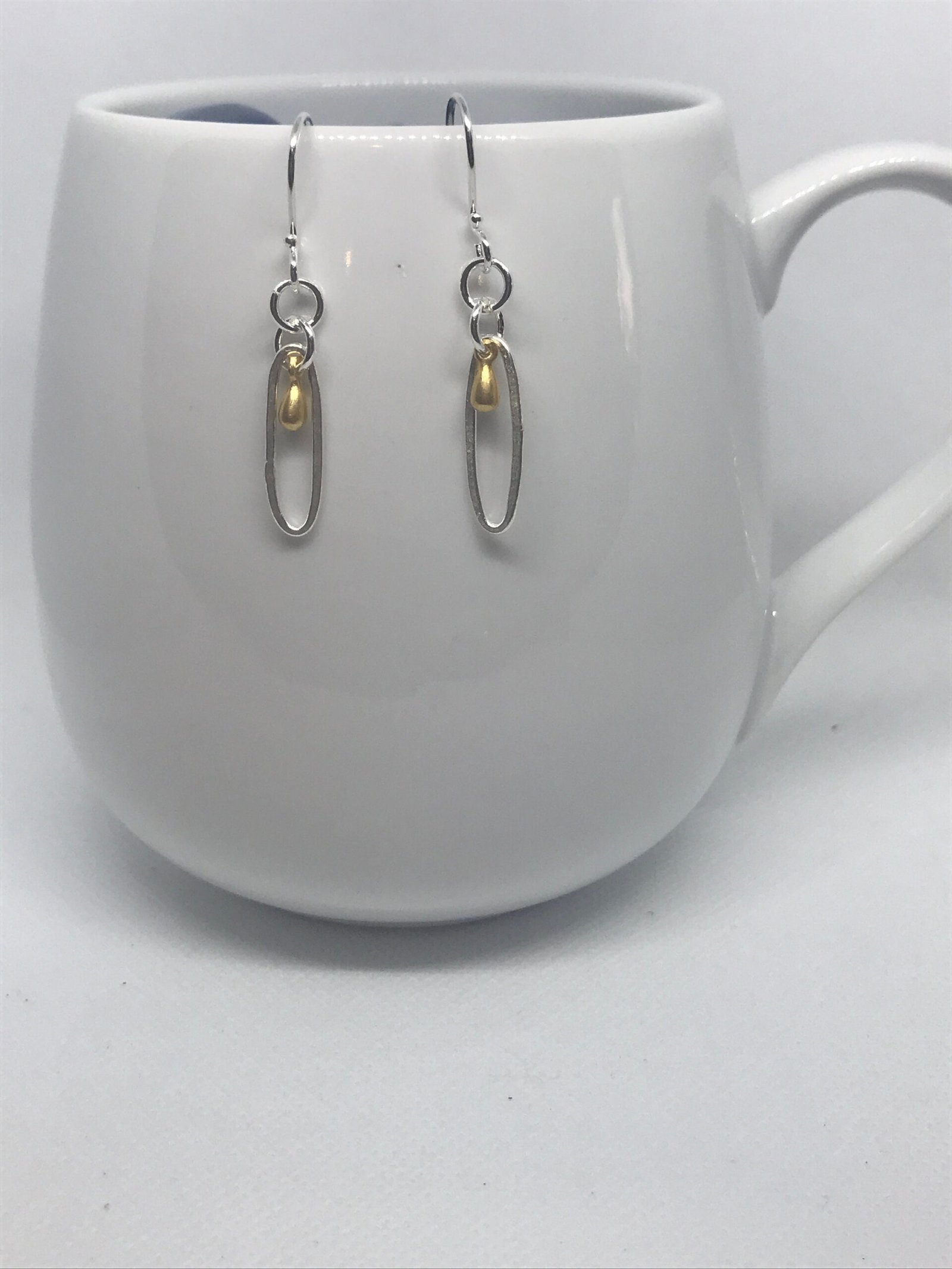 Oblong Oval Earrings Fine Silver and Gold Plated Fine Silver