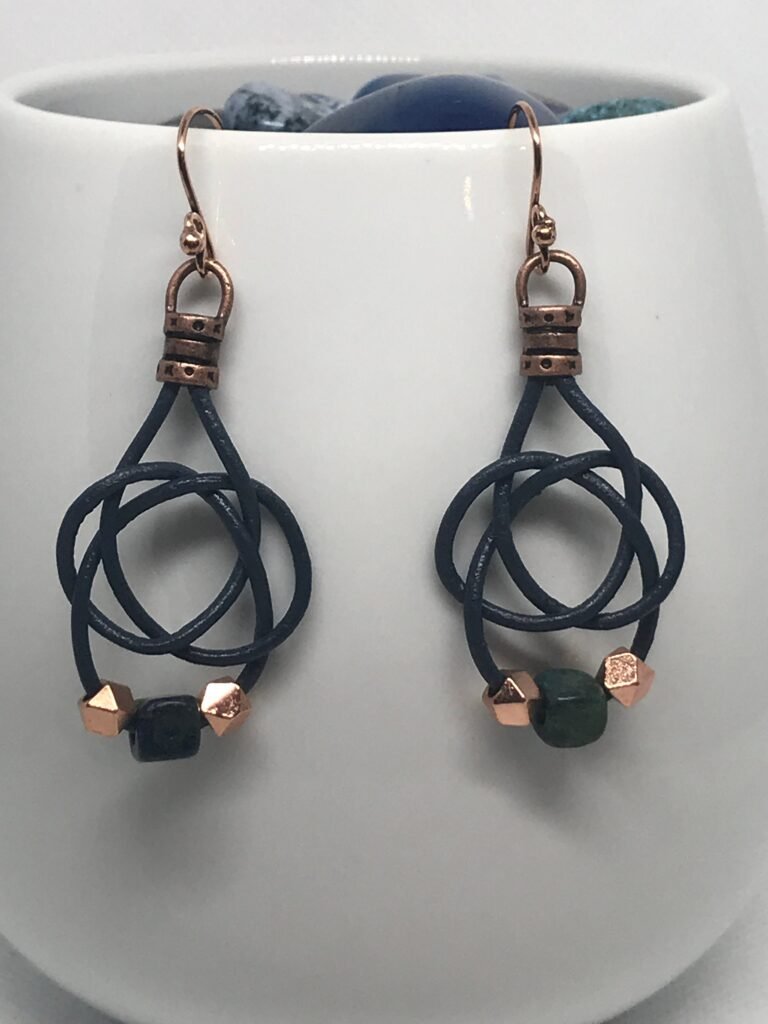Celtic Knot Earrings with Blue Leather with Blue Azurite Stone