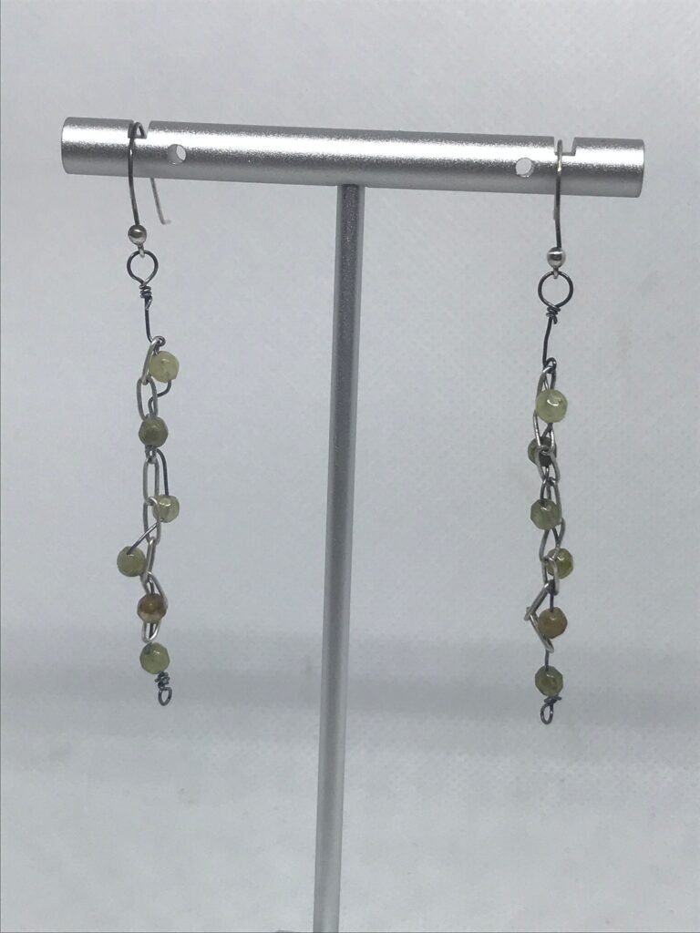 Unique Sterling Silver with Braided Chain and Green Garnet Stones