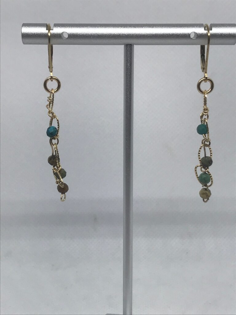 Unique 14K Gold Earrings with Braided Chain and Turquoise Stones