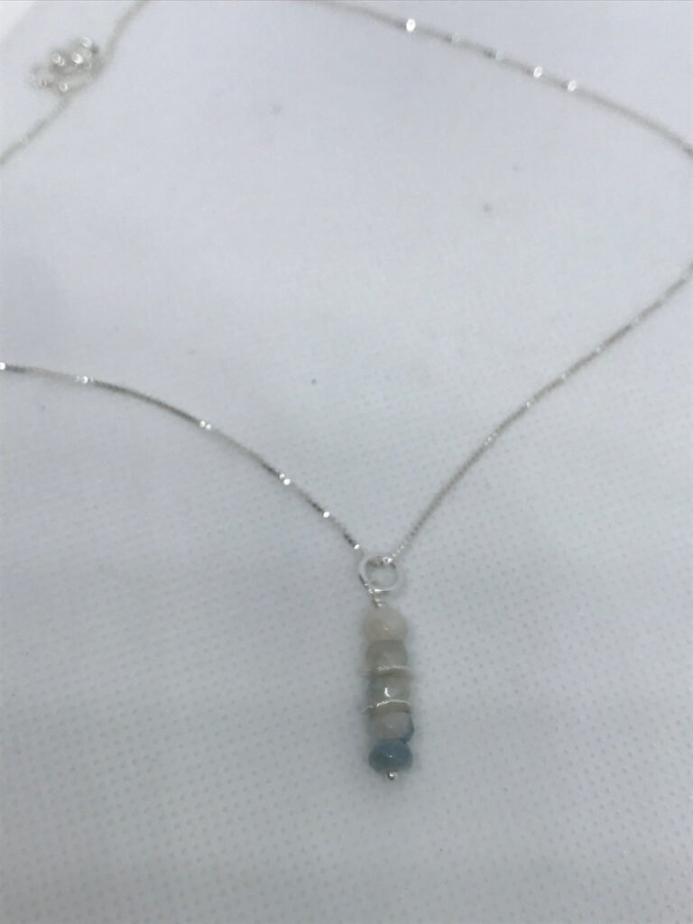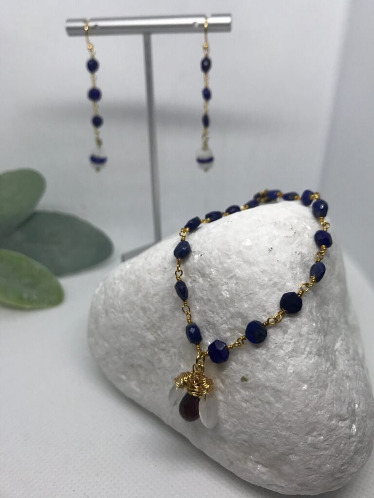 Lapis Chain Necklace with Moonstone and Garnet Briolette