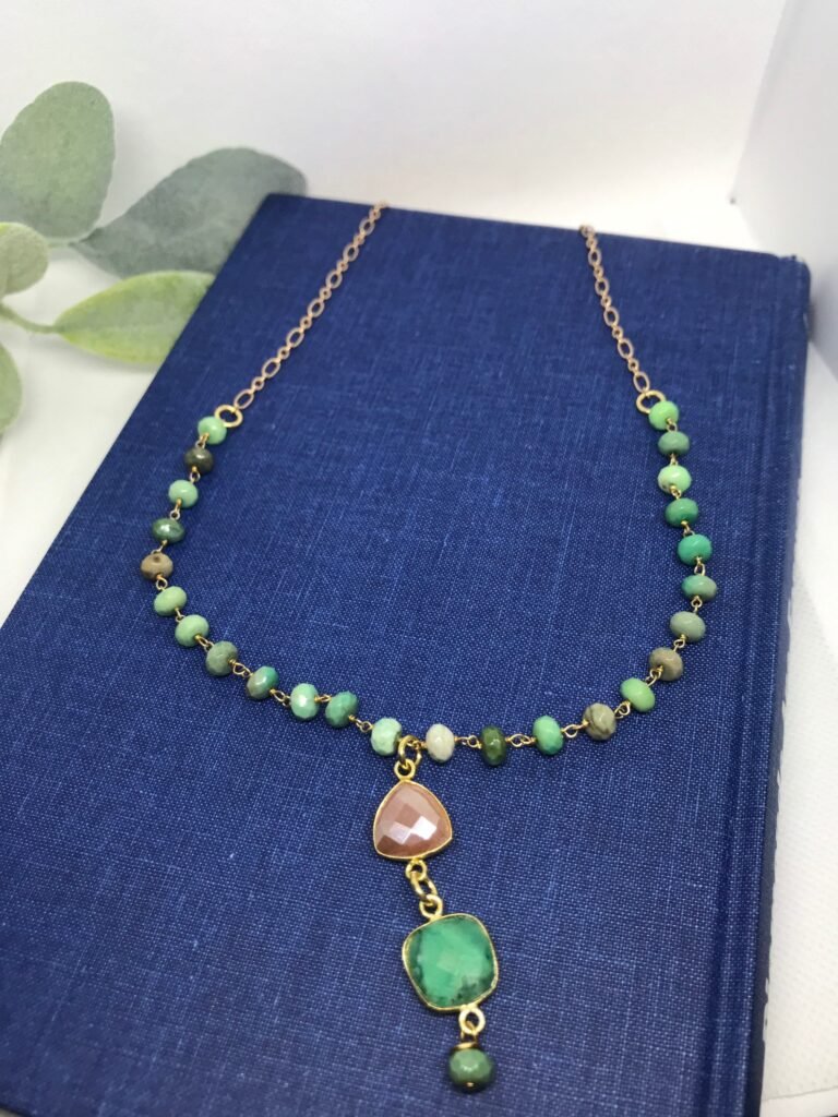 Chrysoprase and Moonstone Rosary Chain Necklace