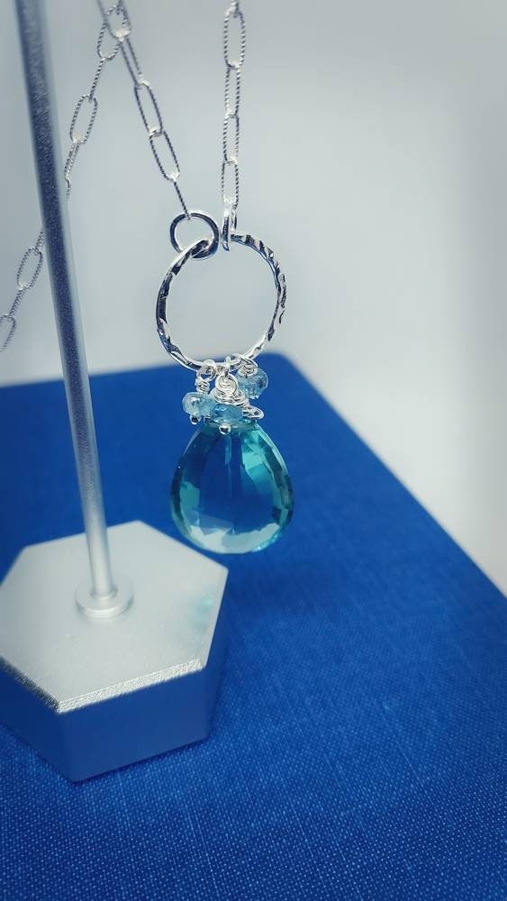 Large Blue Topaz Necklace with Aquamarine Accent Gems